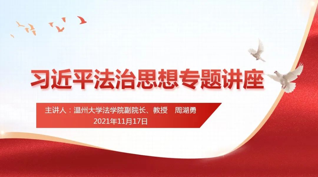 在中央全面依法治國(guó)工作會(huì)議召開一周年之際,11月17日,能源公司特邀溫州大學(xué)法學(xué)院副院長(zhǎng)、法學(xué)博士周湖勇教授,為全體干部員工舉辦了一場(chǎng)深入學(xué)習(xí)貫徹習(xí)近平法治思想的專題講座。能源公司平陽、蒼南風(fēng)電場(chǎng)員工通過“云會(huì)議”參加了學(xué)習(xí)。